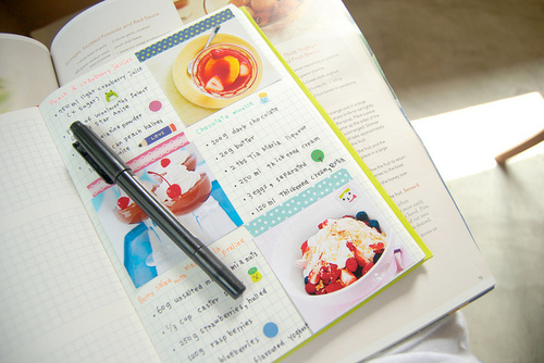 Una sección para cosas importantes con un poco de Washi... otra seccion con unas hojas para escribir sobre recetas o consejos.. y listo! Una agenda totalmente a vuestro gusto.