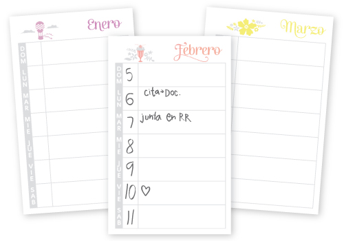 El modo de decoración es libre, los calendarios los podéis pegar unos seguidos de los otros o dejar páginas en blanco entre ellos para apuntar vuestras "Notas" entre uno y otro mes.