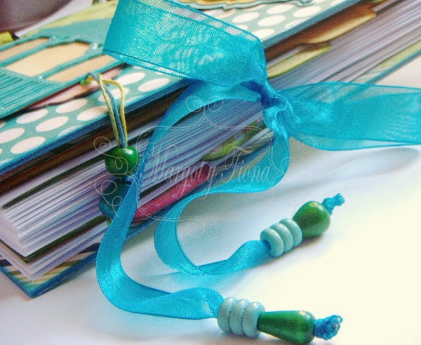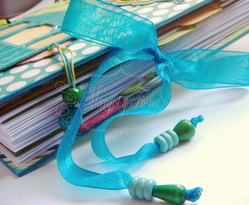 Toda la agenda se encierra con un alegre lazo de organza terminado en unas cuentas de madera.
