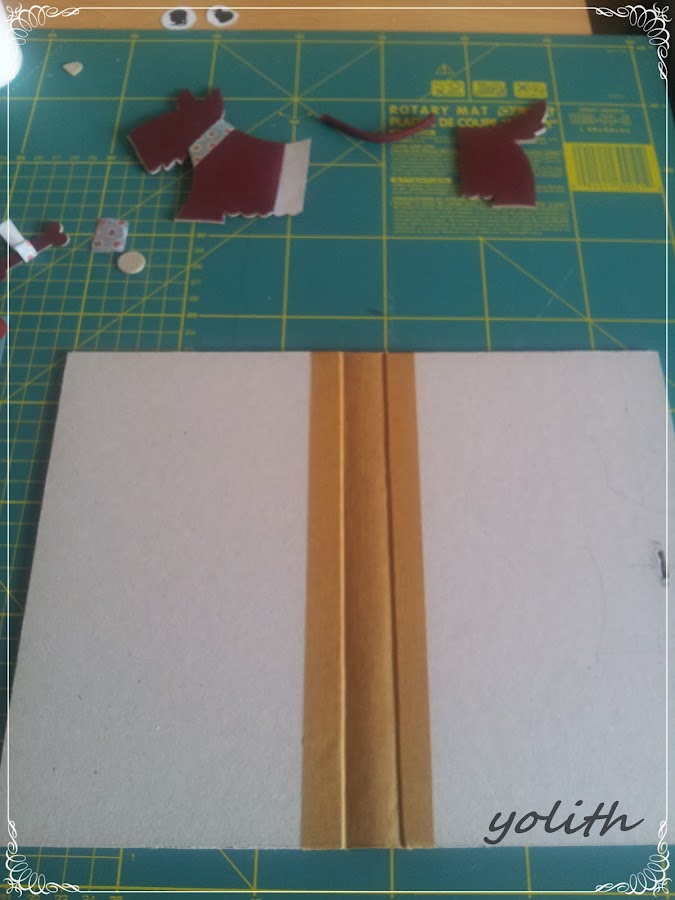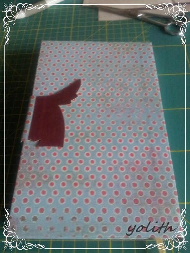 Esta en concreto la he trabajado con un papel de Artis Cromática,(Papel Decoupage Creativo) en lunares,precioso y mi primer troquel hecho con la Big Shot,en forma de perrito.