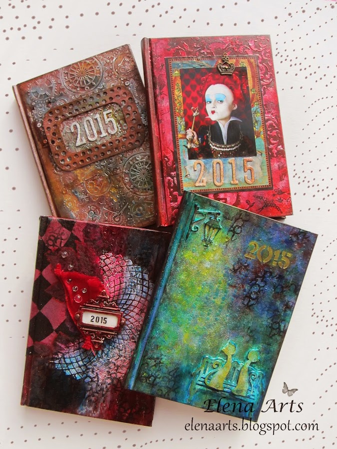 Hoy quiero enseñaros una agenda para 2015 que hice en Mixed Media. Realmente hice 4, una para mí, otra para mi sorteo y otras dos. No voy a escribir una entrada larga, os dejo algunas imágenes del trabajo a vuestro juicio :)