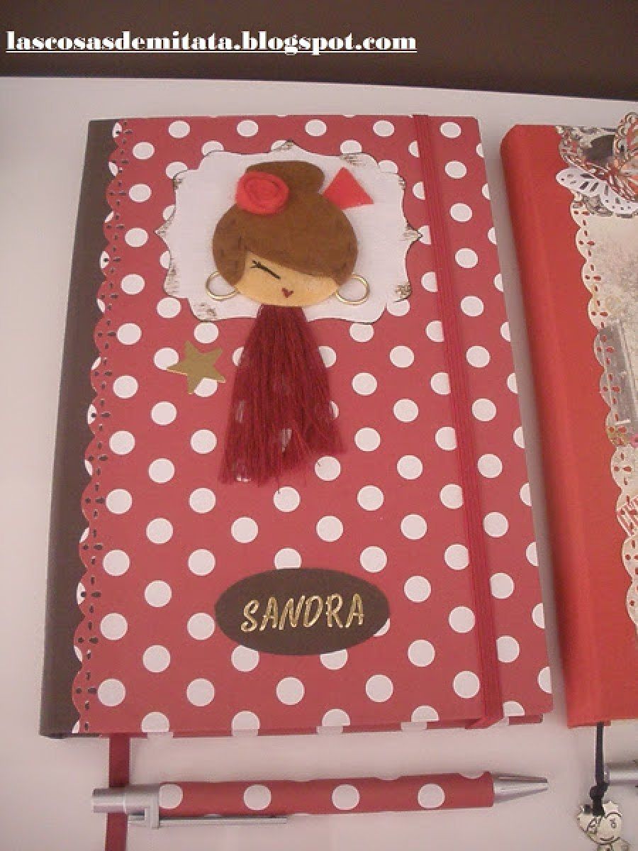 El fieltro es un material económico, fácil de conseguir y muy sencillo a la hora de trabajar con él. soytata ha utilizado este tipo de material para decorar su agenda con una bonita muñeca que ha pegado sobre un papel de lunares. Más detalles aquí.