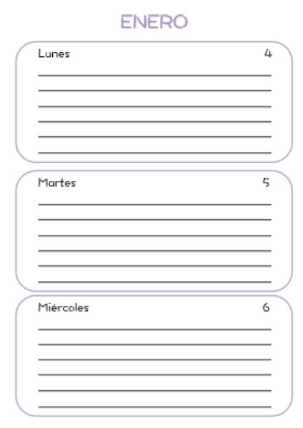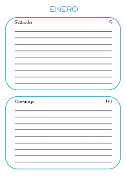 Como veis por sus páginas, son diarias, de tres días por página y de dos días por página. Con distintos colores y con páginas de calendarios mensuales, hojas de notas, para los datos personales y con frases motivadoras.