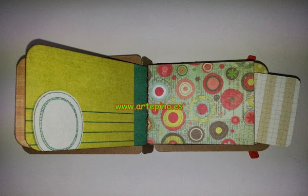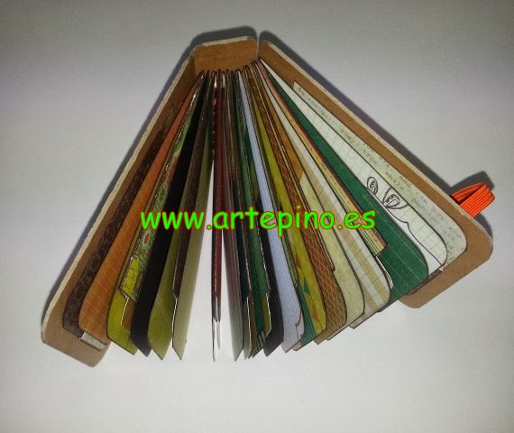 Como me quedé con ganas de más, ayer me puse a hacer esta otra agenda pero en tamaño mini, en este caso deje los cartones a la vista y como cierre usé cinta elástica: