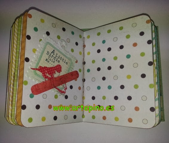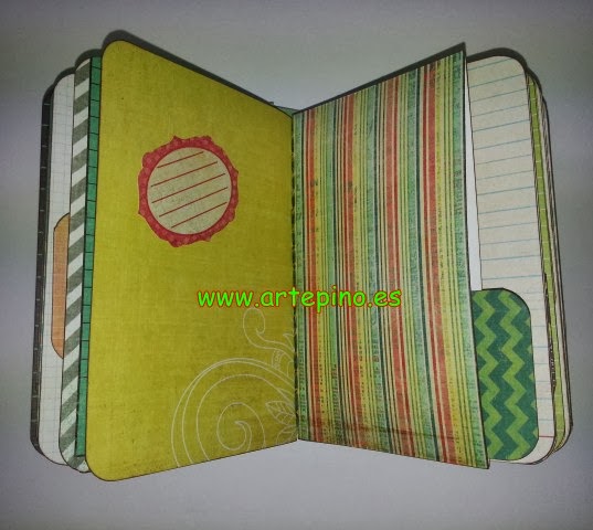 A la hora de escoger los papeles que formarían el interior de la agenda, como quería darle un toque SCRAP, escogí dos colecciones de We R, os las mostré en el enlace de NOVEDADES, formé hojas y sobres para poder meter notas, papeles... los bordes los manche con la tinta marrón de Artiste:
