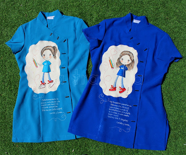 Siguiendo sus indicaciones, hice los dibujos personalizados de ambas seños. Y así es como resultaron las batas:
