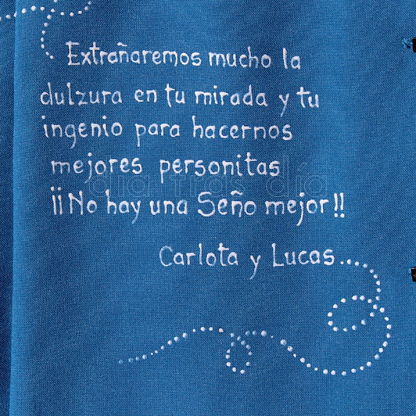 Como habéis podido ver, y aquí os dejo algunas fotos donde se ve un poco mejor, las batas llevaron unas bonitas dedicatoriasde parte de los peques, para que ellas sepan lo mucho que agradecen su labor con ellos: