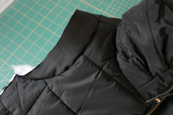 Todo hubiera quedado ahí, pero no, me dio el arrebato y me la llevé a casa. Ya que pensé, si he podido agrandar pantalones, ensanchar blusas... Por qué no una chaqueta, así que ya en casa busqué los materiales, tejido exterior (similar al de la chaqueta), guata y forro. Esto era todo, no necesitaba nada más.