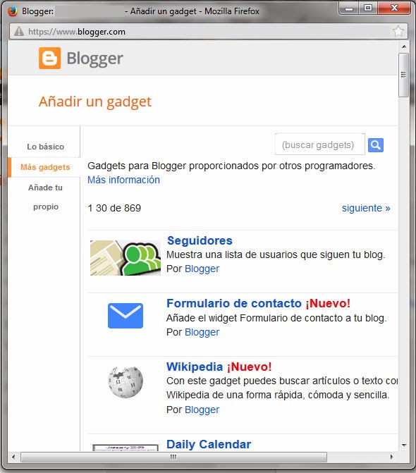 4. Se abre una ventana, pinchas en "Más gadgets"