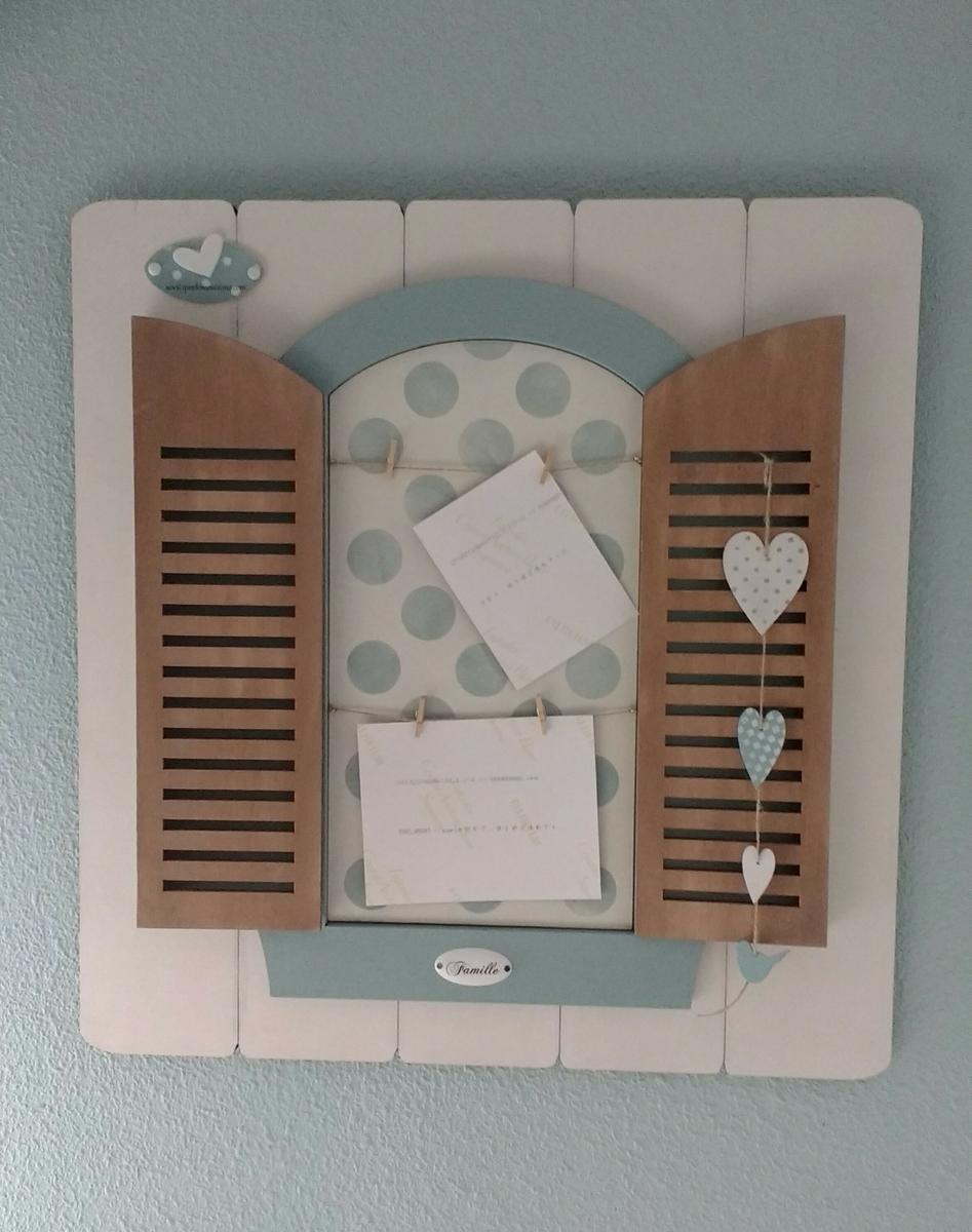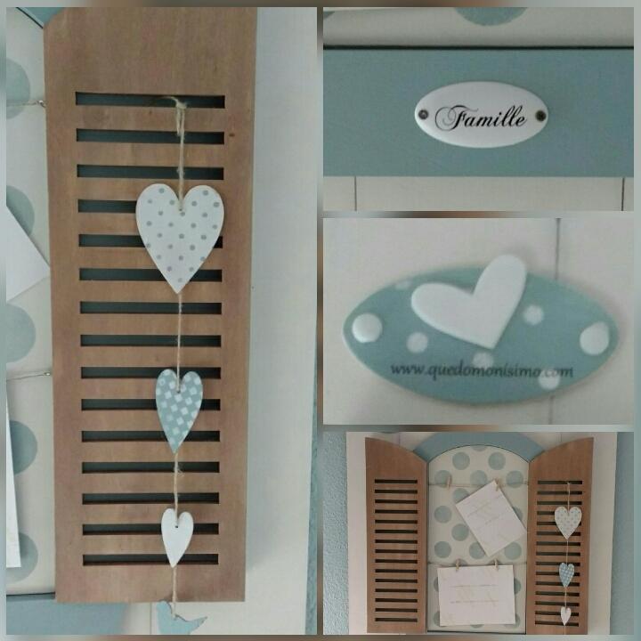 La tabla con la ventana también es de Dayka, al igual que los adornos de corazones. La chapita que pone “Famille” la compre hace mucho tiempo en una tienda de scrap.