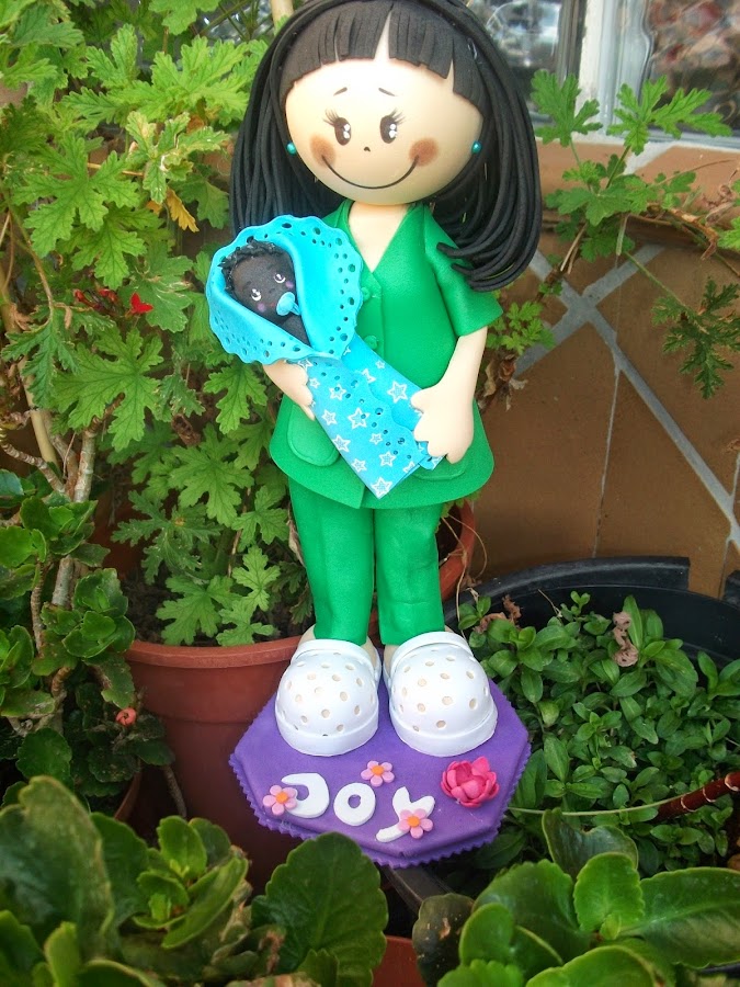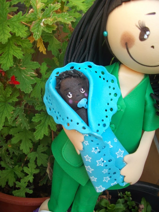 Esta es Joy una matrona de vocación, la que le llevo a África y donde paso unos meses inolvidables, de ahí que quise hacerla con un bebe de color.