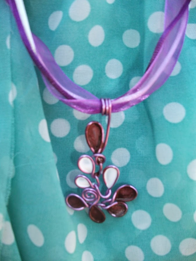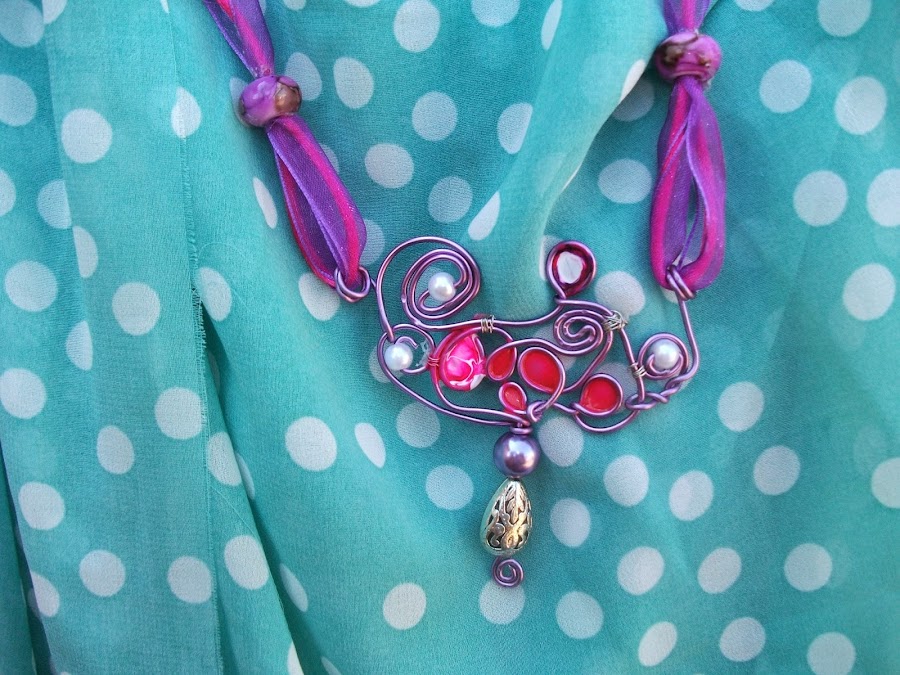 Colgantes de sopesso, y otros de alambre y laca de uñas.
