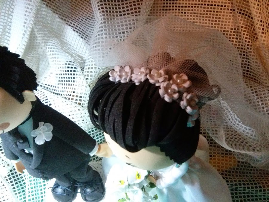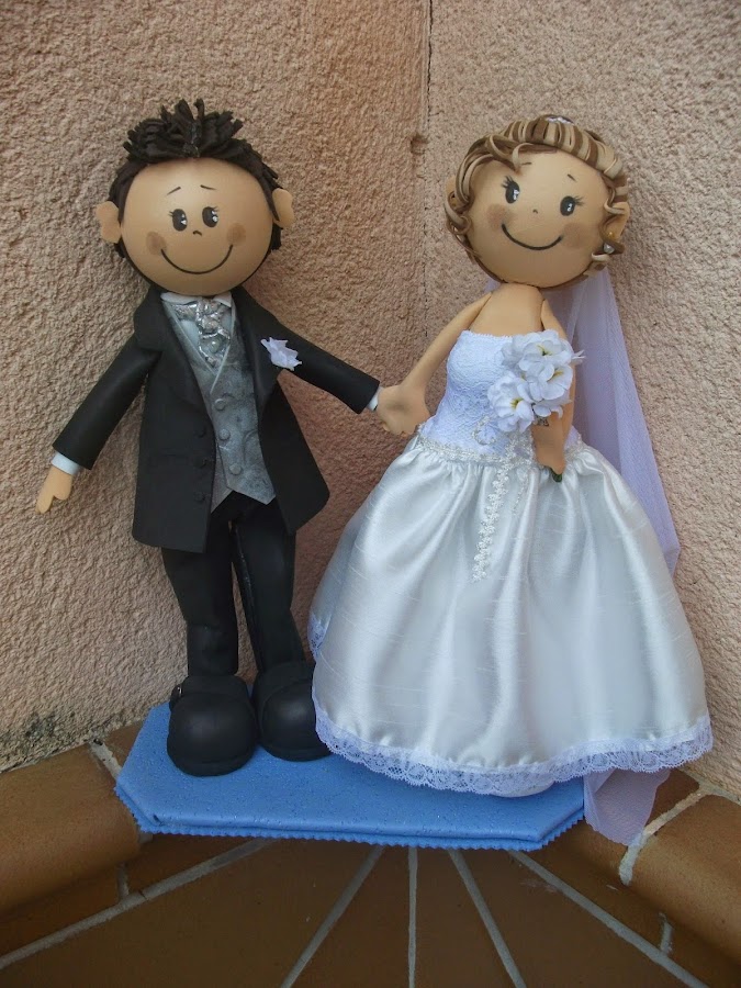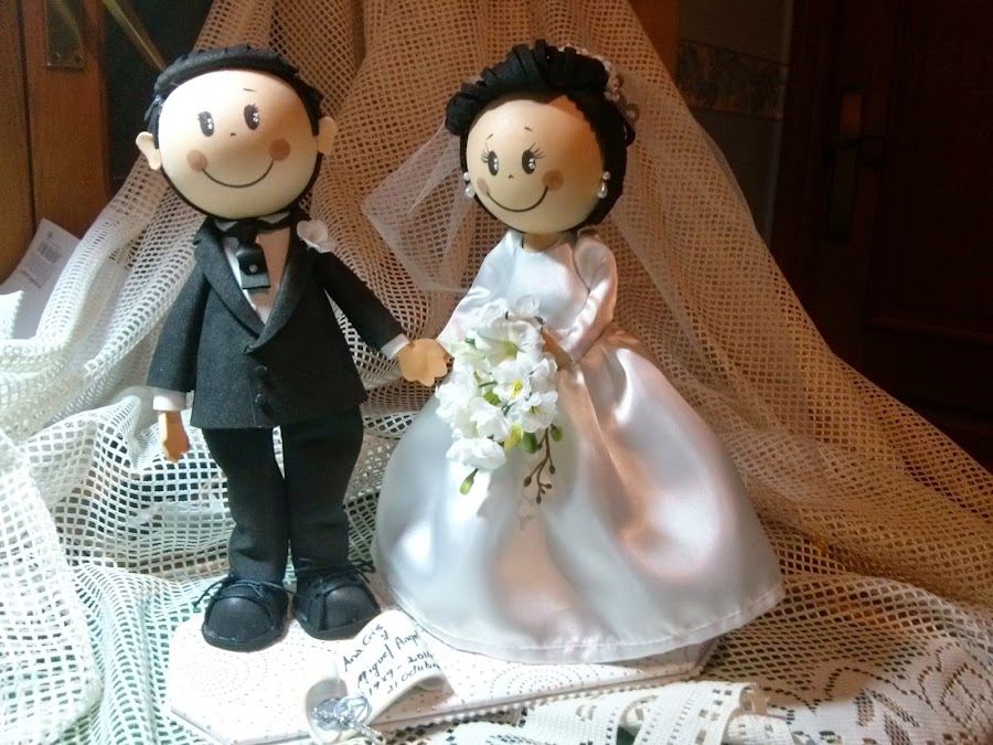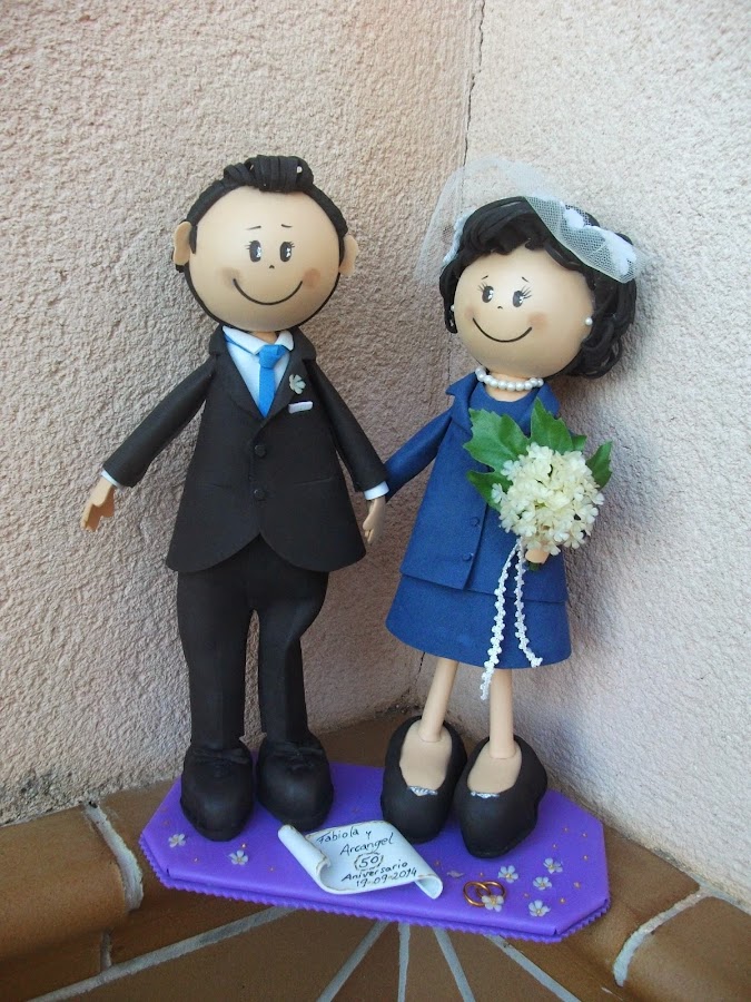 Ana Cris y Miguel Angel celebran sus bodas de plata y su hermana ha querido regalarles los novios para la tarta con el mismo traje que llevaran hace 25 años.