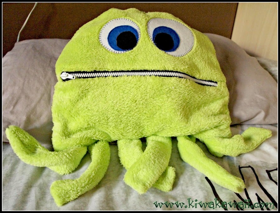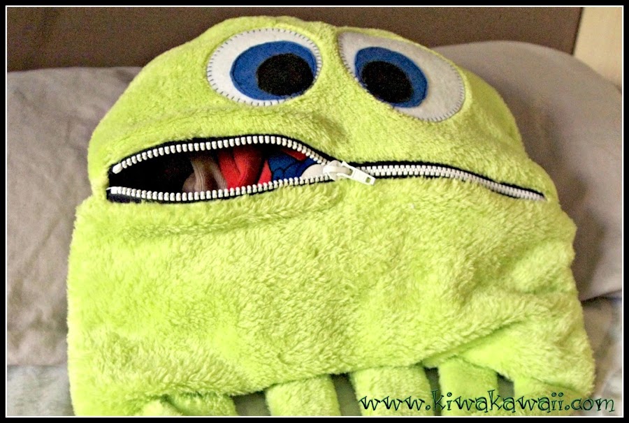 Y a mi me tocó coser para Stephanie de Hasta el Infinito y más allá! Su blog es genial, lleno de ideas chulísimas y costuras llenas de cariño. Lo primero que pensé es que tenía que coserle algo a su peque!! (Ya sabéis que me pierden los niños). Así que decidí coserle este monstruo guardapijama!