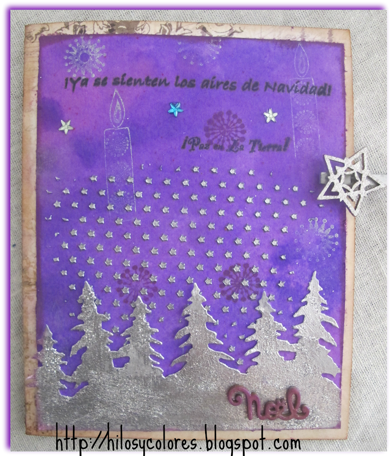 Aquí me tenéis para enseñaros una de las cositas que he hecho.La verdad que este año no estoy muy navideña...(realmente,nunca he sido muy navideña,para que nos vamos a engañar),pero aún así cuando Montse Torres de del Desván del arte propuso un inter de tarjetas de Navidad con técnicas de Mixed Media,no pude resistirme,es una asignatura pendiente y tengo que practicar...Una puntualización:no os olvidéis de poneros guantes cuando la cosa consiste en guarrear,sino queréis acabar asi: