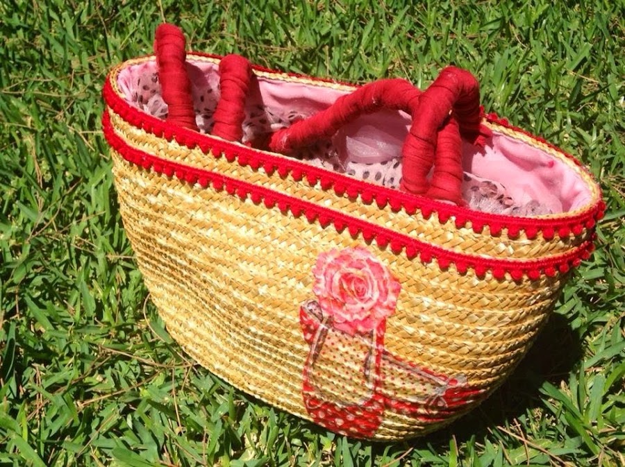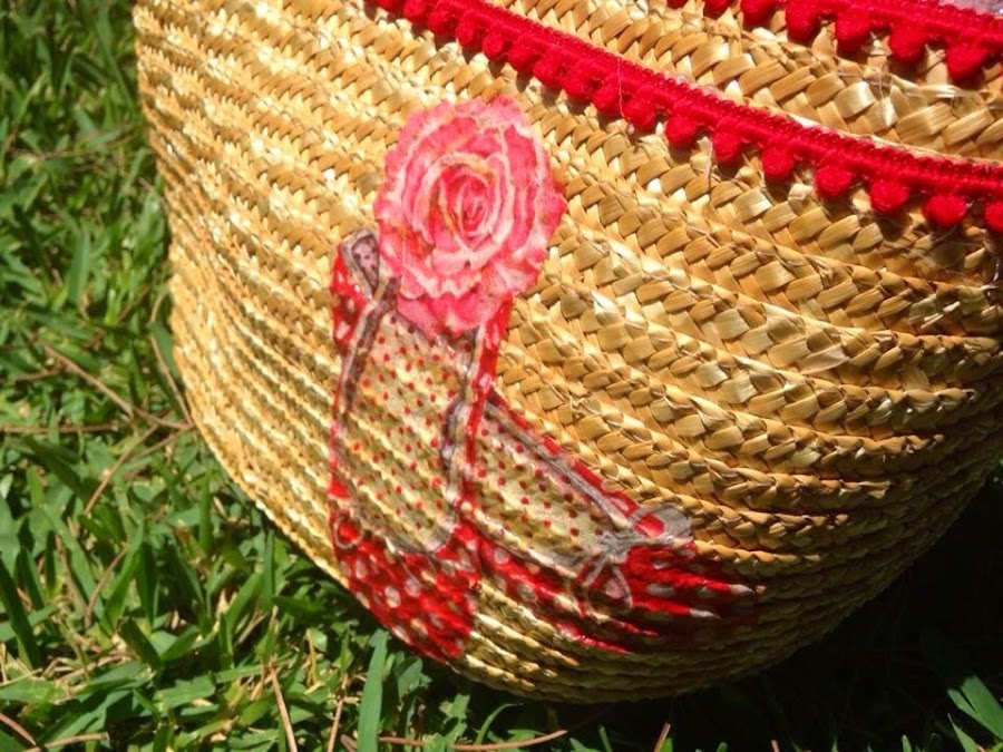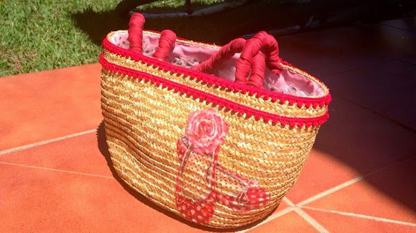 Entre sol y descanso me apetecía tunear un regalo de Sonia .:. Un pequeño capazo que me regaló el pasado verano...con algunas cosillas que me he traído...y mira...tu por donde le he encontrado un aire flamenquito...