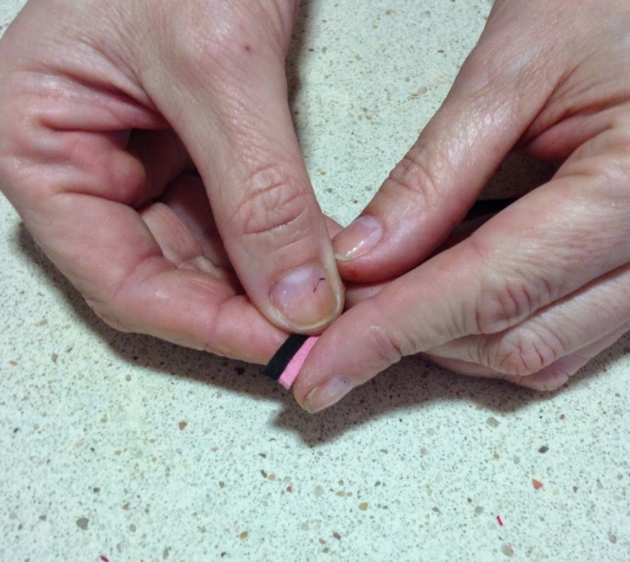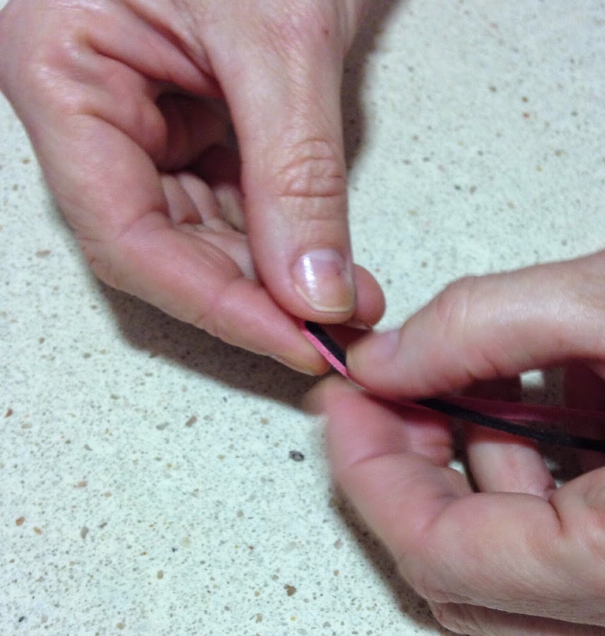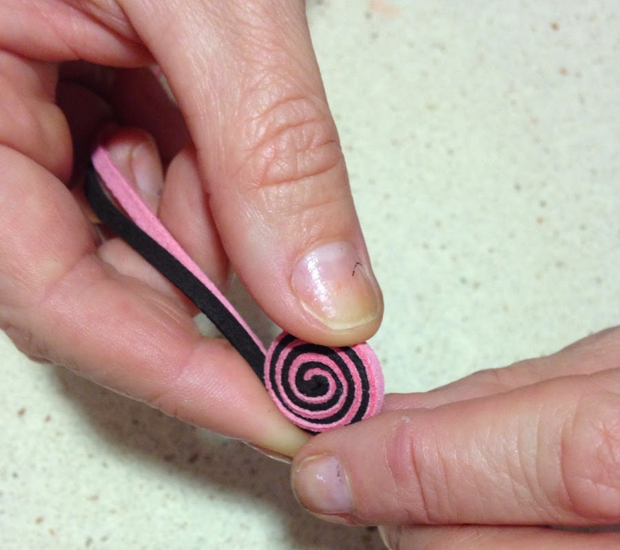 Ponemos dos cintas de antelina sobreponiéndolas y comenzamos a enrollar sobre sí