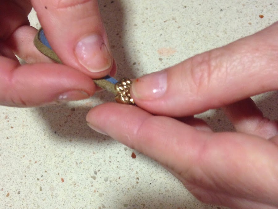 Una vez pasadas, colocamos estas lindas bolitas haciendo un nudo en el extremos para que así haga de tope