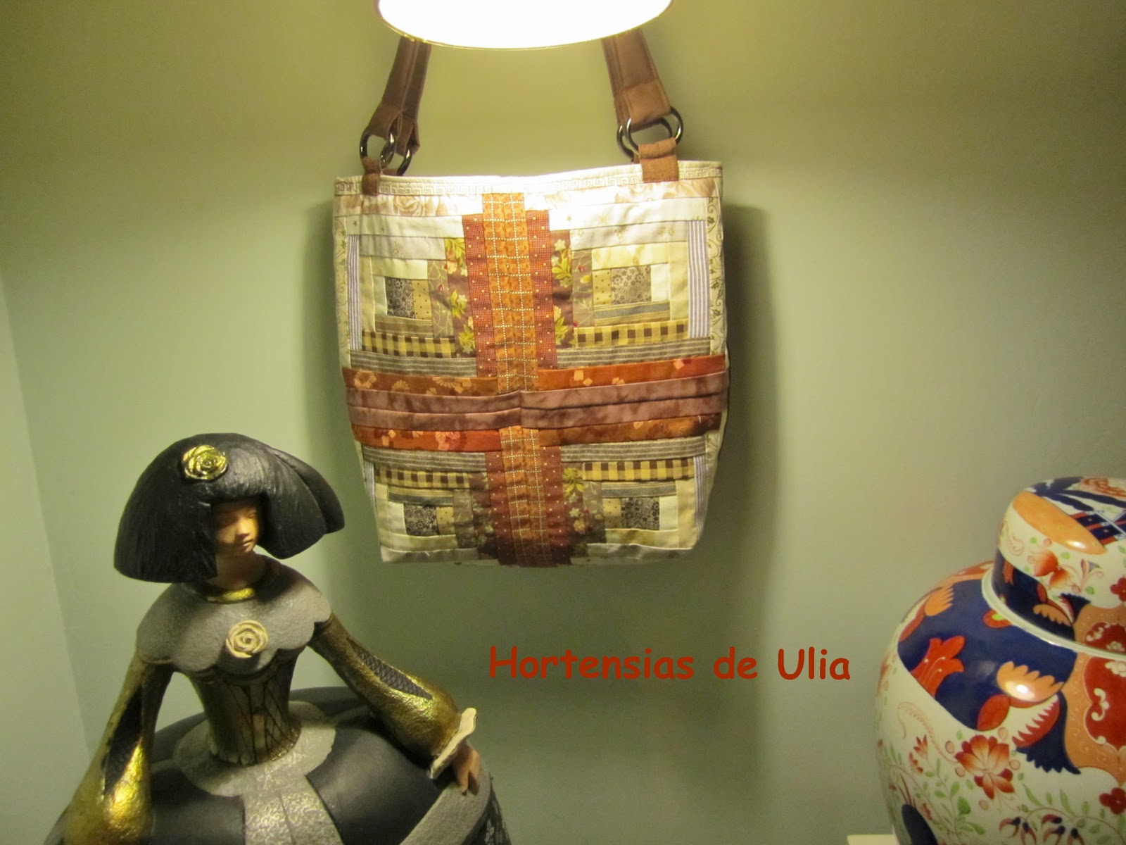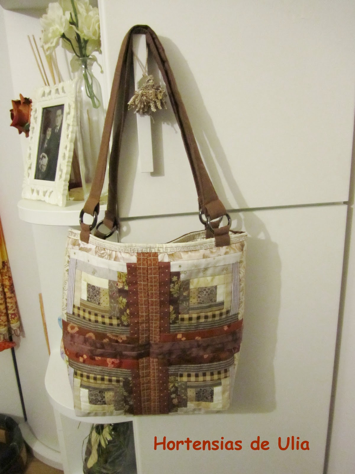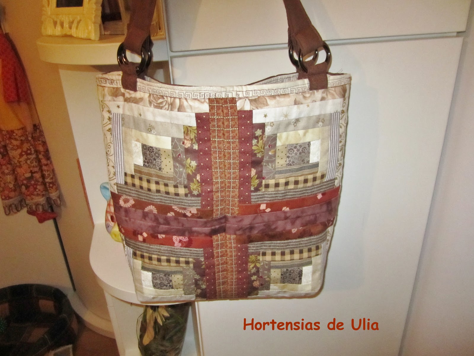 Despues de esta lección historica inventada pero que posiblemente sea cierta os enseño un bolso compuesto por cuatro bloques de almazuelas, paswork o que tengais a bien llamarlo.