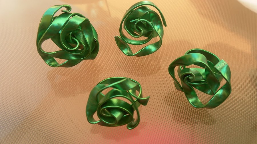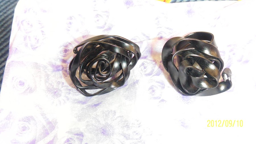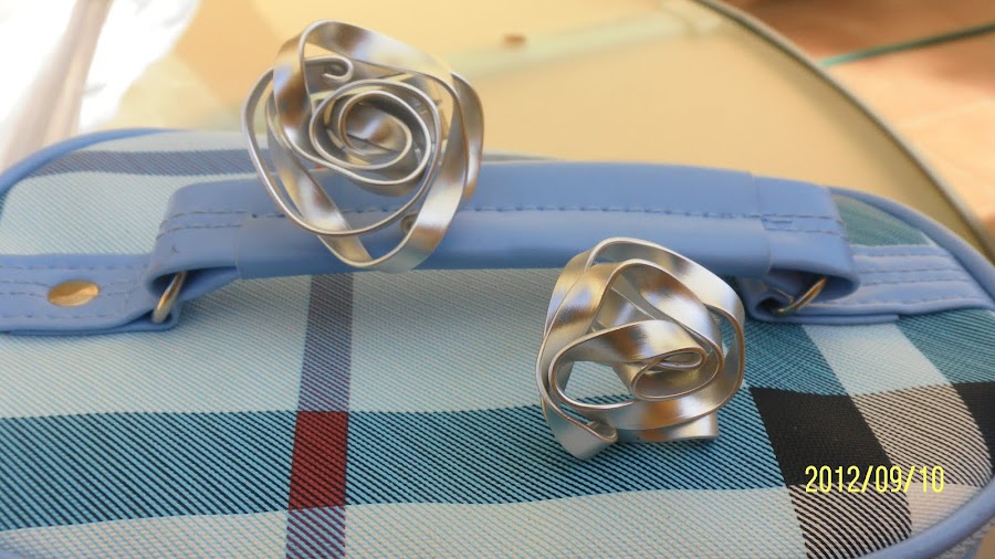 Tenia una ganas terribles de conseguir el alambre plano e iniciar algún trabajo con la arcilla polimérica.Conseguirlo, tarea difícil... En España se consigue muy mal así que me decidí por hacer un pedido a Francia.Imaginaros como es la cosa , que el color plateado está agotado pero compré de otros colores y... ...manos a la obra.Estas son mis primeras piezas. Confieso que han resultado más laborio ...