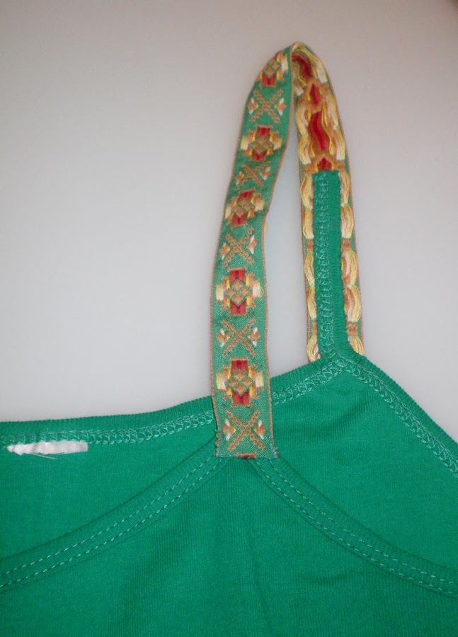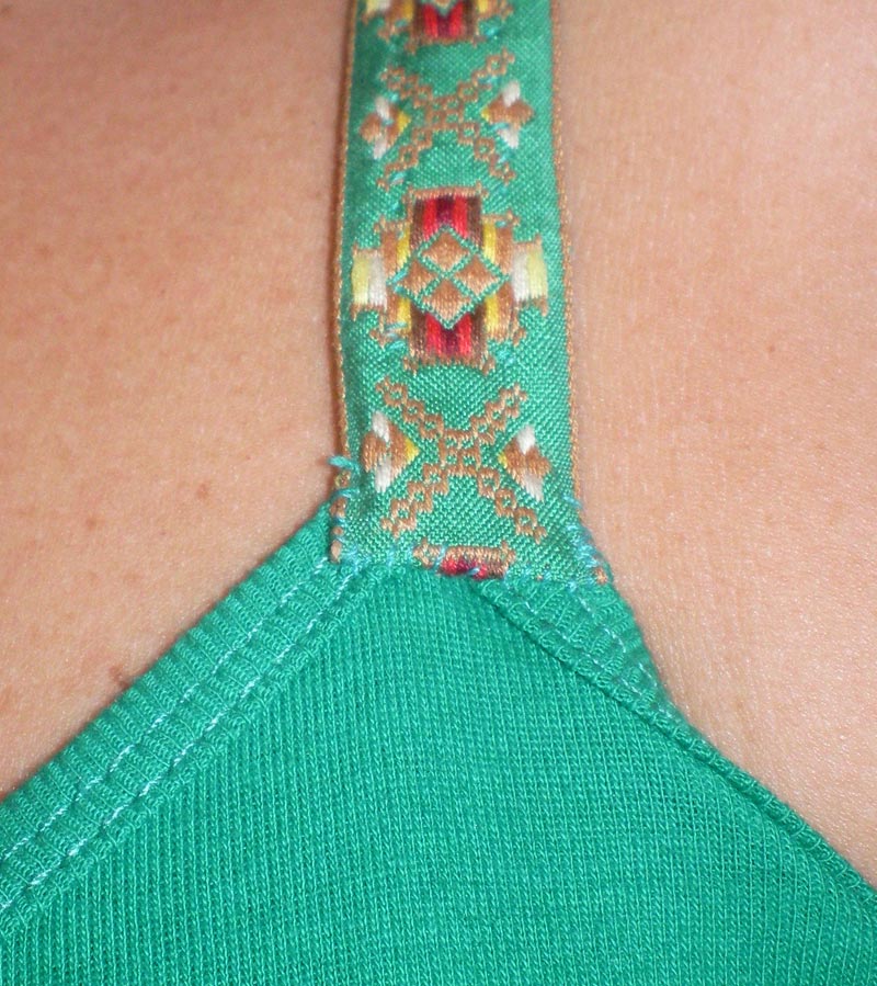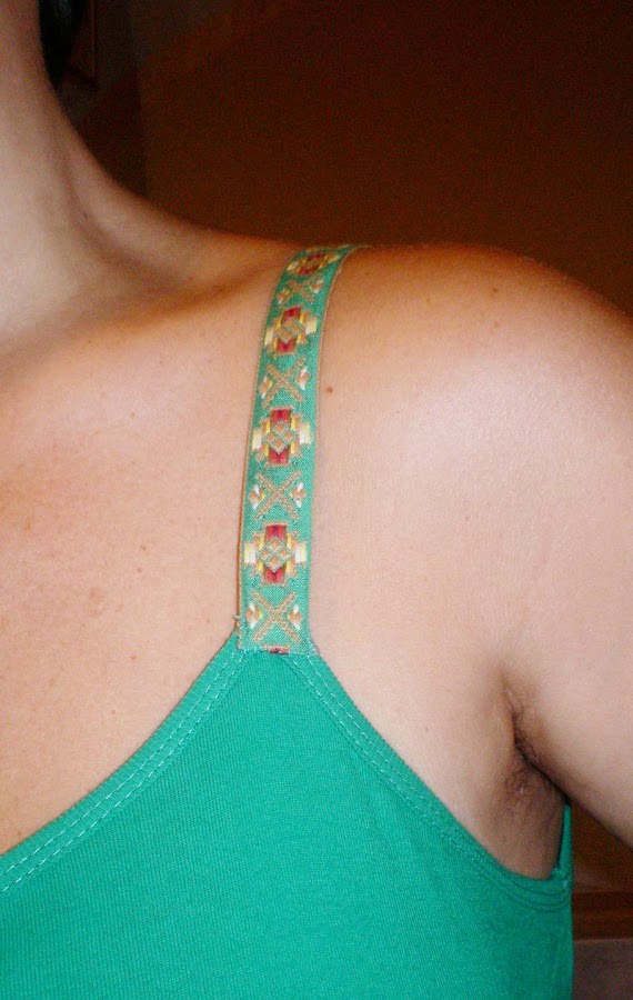 Con este añadido de cinta bordada ha conseguido darle un largo adecuado al tirante, hacerla especial y poder usarla con comodidad.