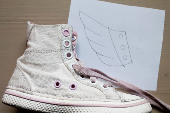 Lo primero que hice fue dibujar la forma de las alas, guiándome un poco de lo que veía en internet. Y marcando el lugar donde irían los agujeros.