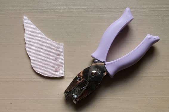 e hice los agujeros, utilizando una perforadora, y terminándolos con una pequeña tijera, ya que la perforadora no llegaba a cortar completamente el foam.