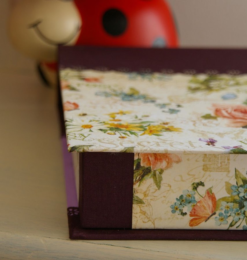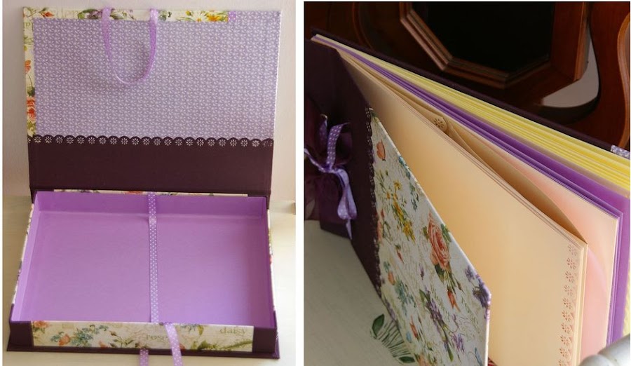 Aunque este papel admitía muchos colores, hemos utilizado tonos malva, lila, violeta, y un lazo también en malva con topos blancos.