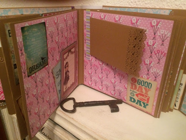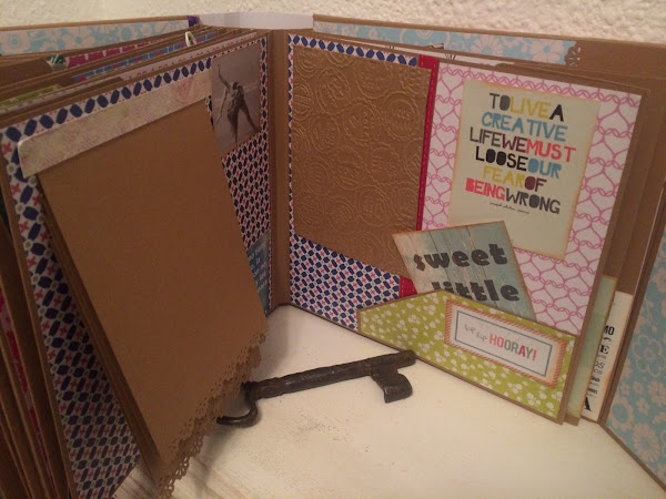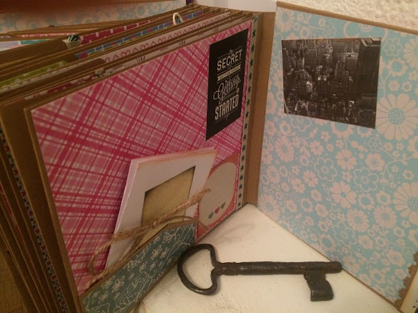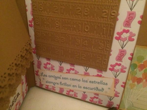 Encuadernación de espina en formato grande, con mini fotofolio en el interior. Mucha tarjeta, frases motivacionales y detalles especiales para ella que su madre me fue comentando: New york, baile, una canción...