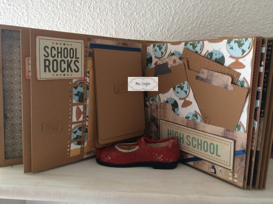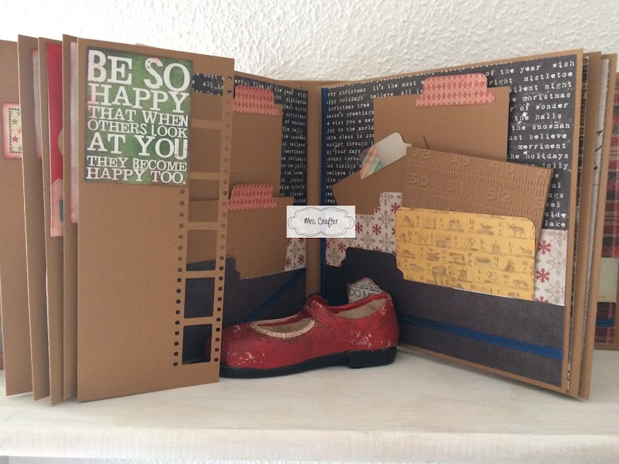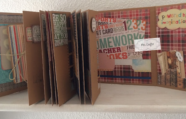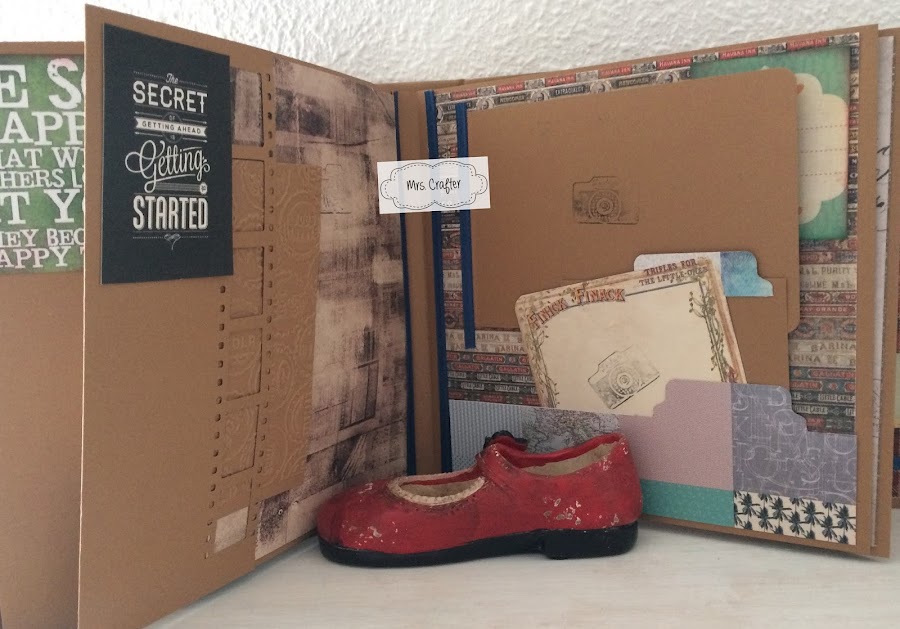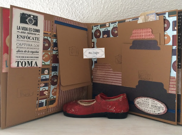 Álbum para celebrar el 18 Cumpleaños de Raúl, realizado con encuadernación de espina, unos papeles preciosos, con ese aire retro de Tim Holtz, y muchas tarjetas, bolsillos...., además de un mini fotofolio en la contraportada.