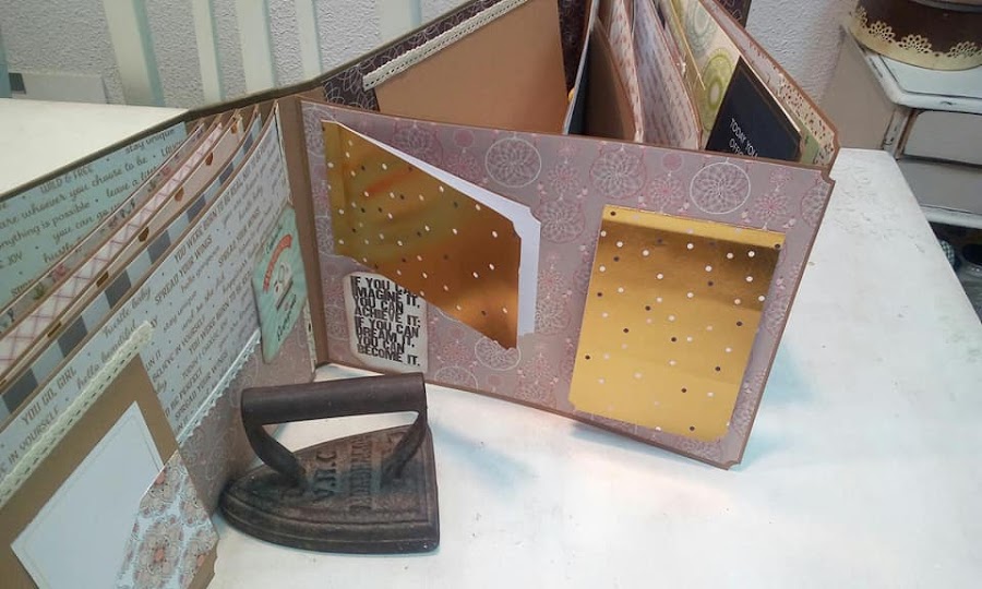 Encuadernación de espina y 12 hojas tamaño folio, mucha capacidad dónde atesorar sus recuerdos desde pequeña. Sobres para guardar dibujos, recuerdos de colegio y mucho desplegable.