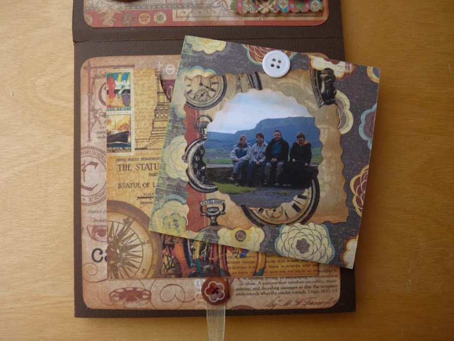 Pues éste es el trabajo que me ha tenido entretenida durante un tiempo, y que os imagináis que tuve que hacer a escondidas, para que el homenajeado no descubriera nada. Y además, cuando lo tenía a medias, me dijo mi marido: "Oye, ¿a mí no me harás nada de scrapbooking, verdad?. No hace falta decir que pensé "¡Upss, tierra trágame...!