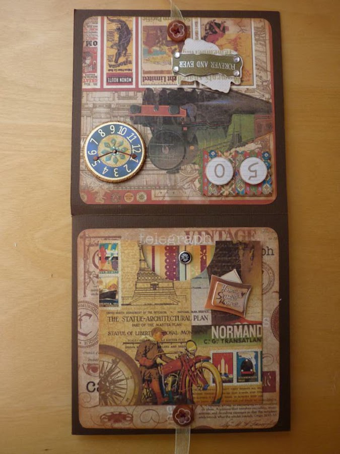 Y para amenizar la espera de si llueve o no, os quiero enseñar un álbum que he hecho para mi marido, que acaba de cumplir 50 años. Hacer algo para un hombre es complicado, ya que no puedes abusar de adornos con flores, lazos, etc. El público masculino es bastante austero en ese sentido. Así que tocó ponerle imaginación, y el resultado es el siguiente: