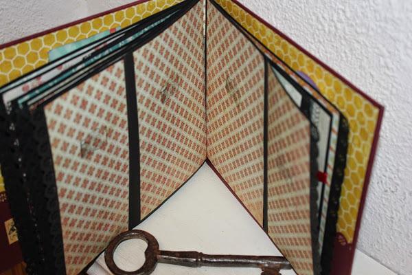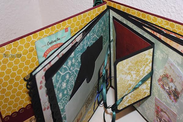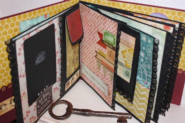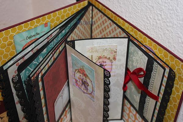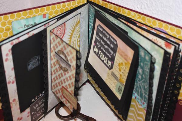 Como casi todos los que me piden últimamente, encuadernación japonesa en gran formato: 10 hojas tamaño folio con desplegables, tarjetas en cascada, trípticos....