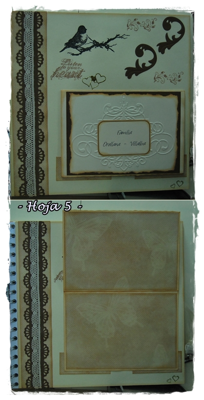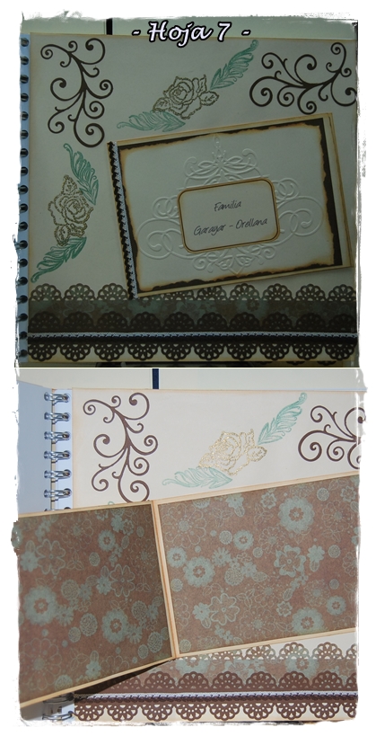 Las demás hojas están dedicadas a cada uno de sus hijos y su familia y en cada una he utilizado papeles distintos y de los que no sé las colecciones exactamente.