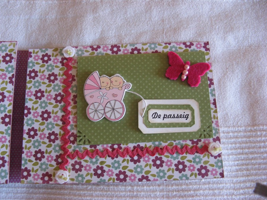 Esta para cuando vayamos de paseo. El cochecito iva en el mismo pach del biberon. La mariposa de fieltro un regalo que no recuerdo quien me la envio.
