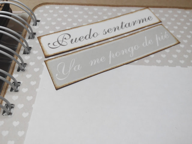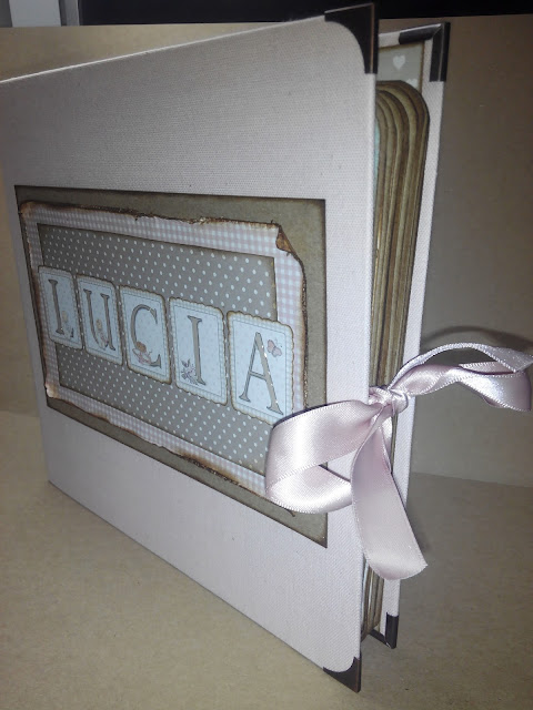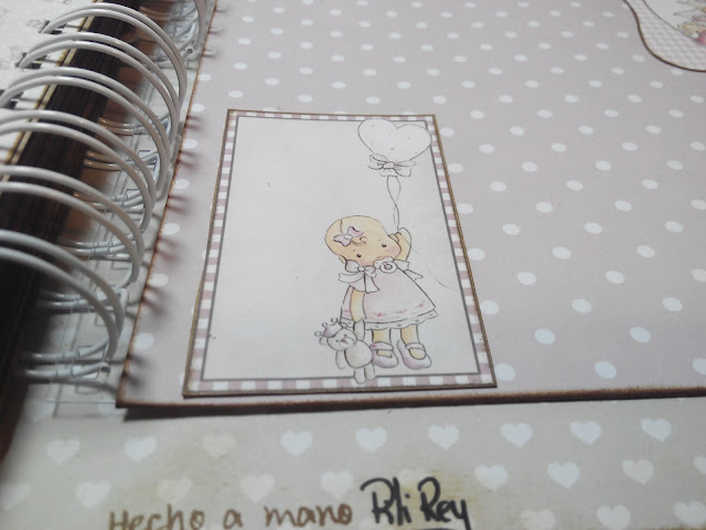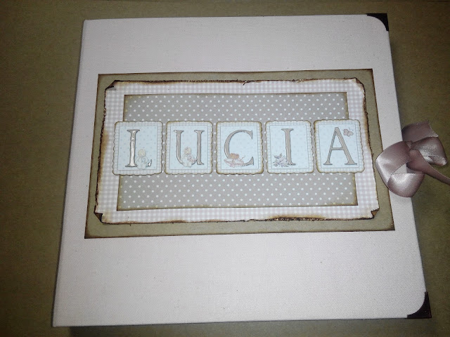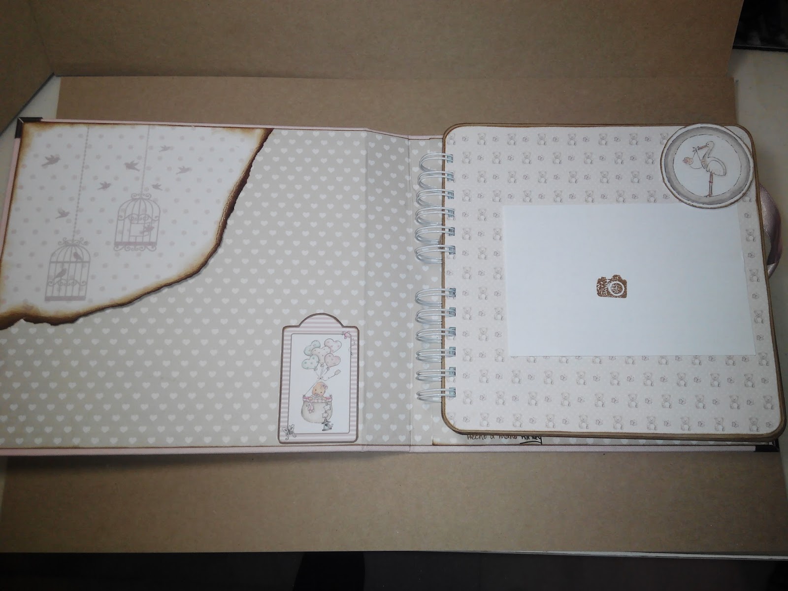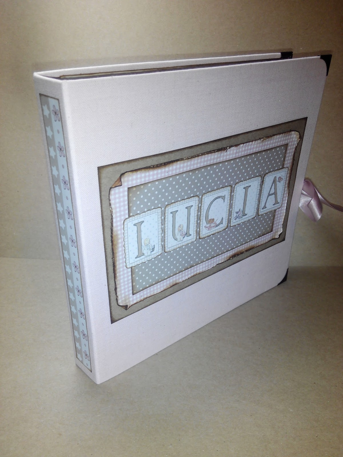 Las portadas están forradas con tela de encuadernar color rosa bebé y las hojas del álbum, esta vez en cartulina color craft, que dan un contraste muy bonito.