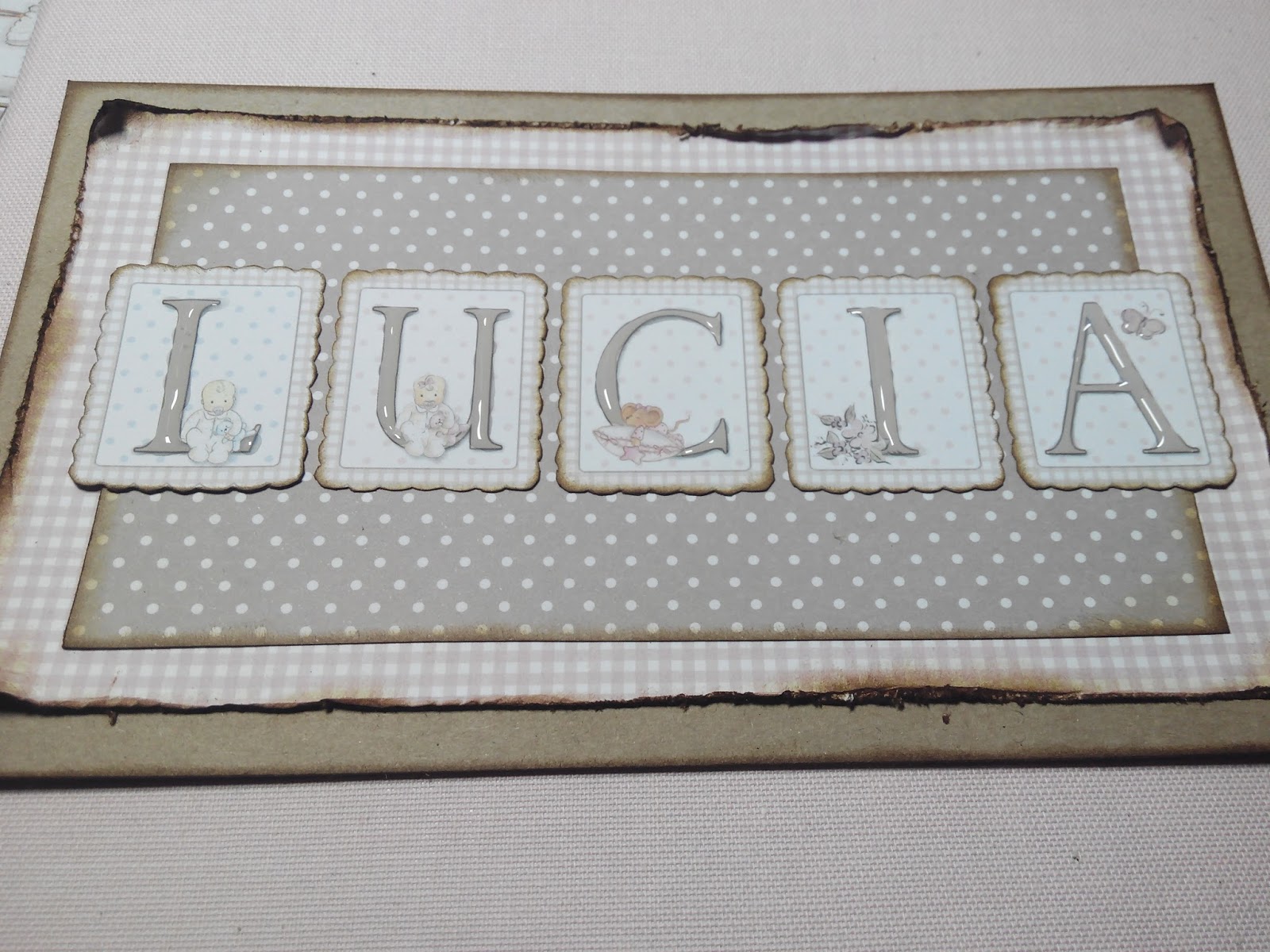 Los datos de nacimiento van cogidos con una cuerdecita de rafia, unidos todos entre sí, como si pareciera que los lleva la cigüeña.