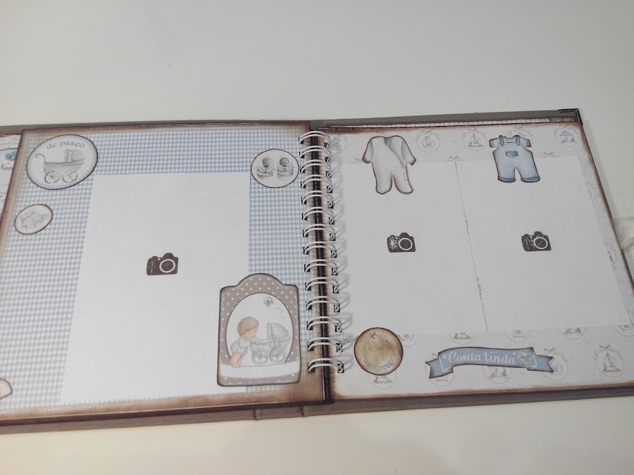 Un álbum para plasmar las mejores fotos durante el primer año del bebé con unos papeles muy bonitos.