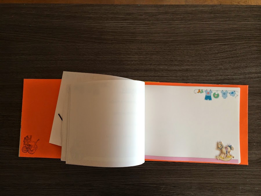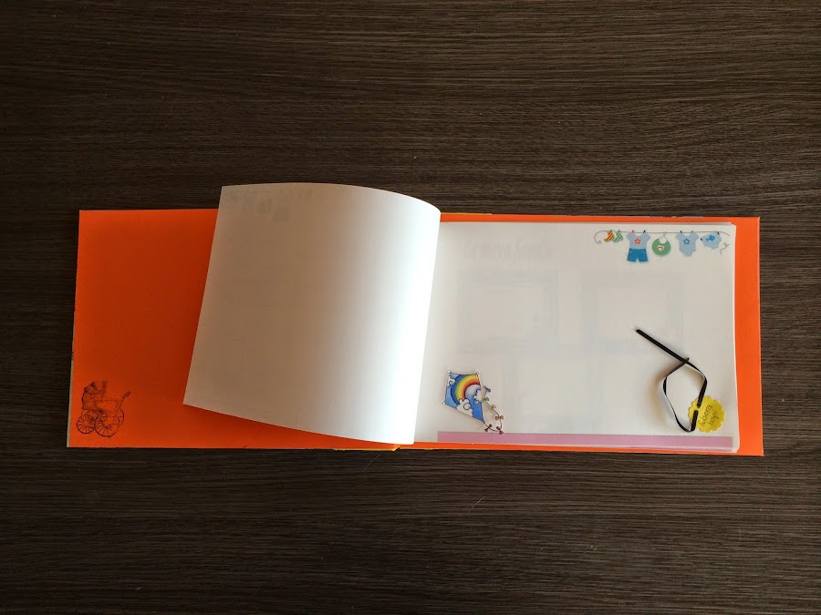 El resto de páginas, sólo he dejado la ropa colgada, la ralla de la parte inferior y con volumen he puesto otras imágenes, dejando suficiente espacio para que sea la mamá la que lo llene como ella quiera