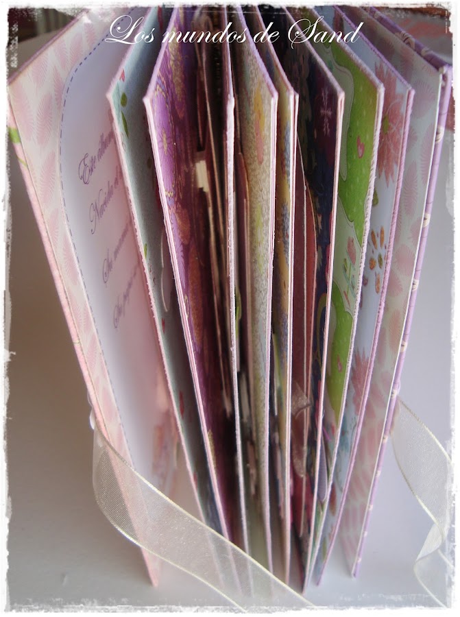 Y sin más os muestro el álbum: siendo el rosa y el malva los colores dominantes, cada página está llena de alegría y dulzura, para que los papás de la pequeña Valeria llenen cada rincón y cada desplegable con sus preciosas fotografías.