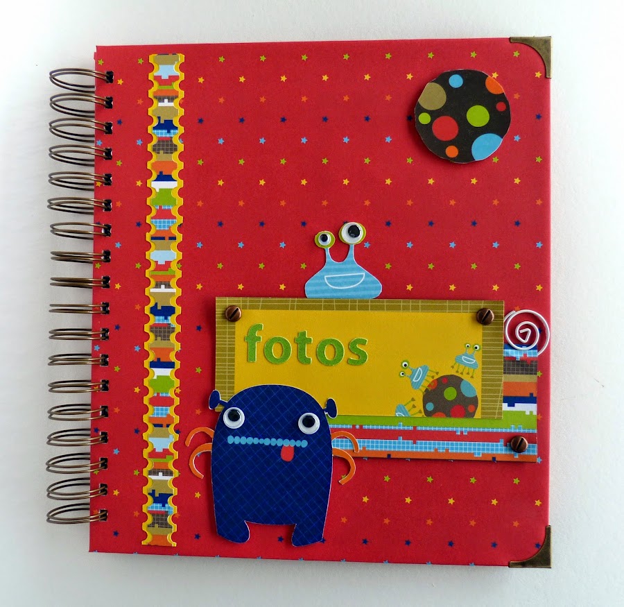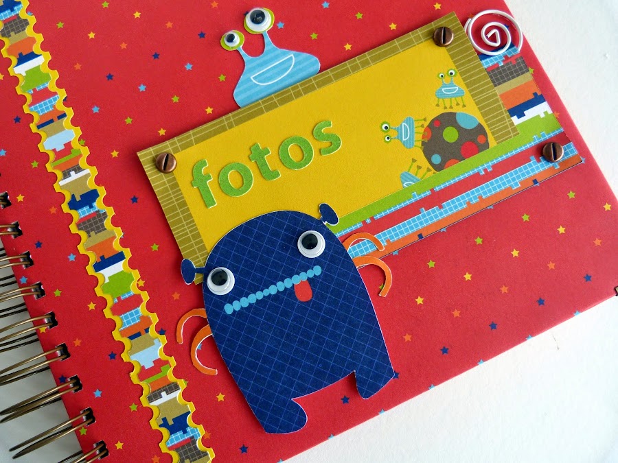 Los brads en forma de tornillo son de Artemio y enmarcan el doble papel donde he colocado la palabra "fotos".