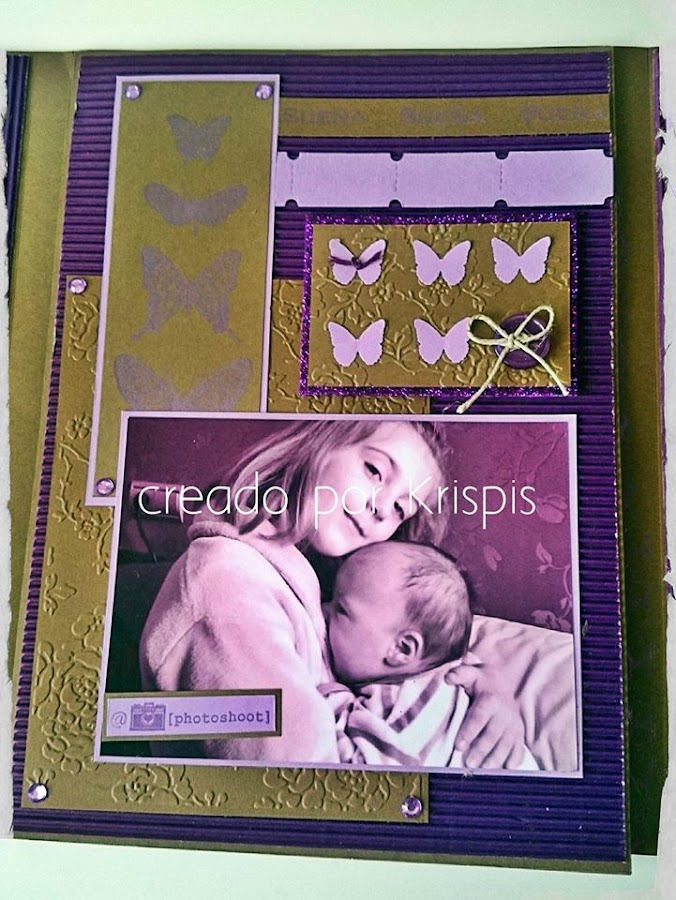 He usado tonos craft y lilas, cartulinas en esos tonos, y cartón corrugado, la verdad es que el lila no es uno de mis colores favoritos, pero con esas fotos va muy bien, y me ha encantado el resultado.Portada del álbum.