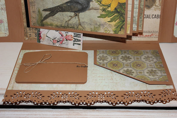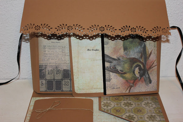 Realizaremos este álbum tamaño folio que recuerda a una carpeta, con tarjetas en cascada, sobre con fuelle y tapa, desplegable y , en el centro, un álbum con encuadernación de espina, con hojas formato sobre y bolsillos, todo ello decorado con unos papeles preciosos.Como siempre con tutorial por escrito para que repitas en casa con toda comodidad.