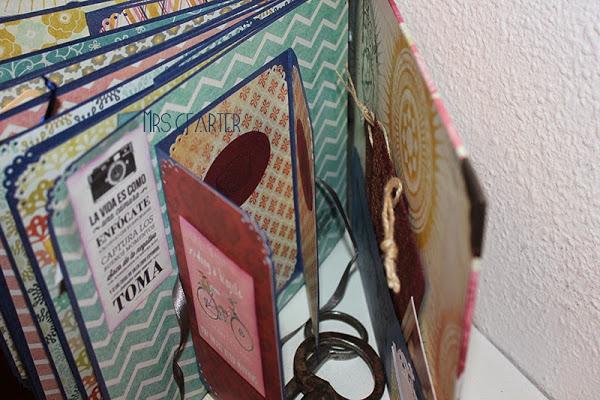 M.J. contactó conmigo para que le hiciera un álbum que recogiera la vida de R.La encuadernación, la preferida de muchos, japonesa y en interio 10 hojas tamaño folio con mucho desplegable, tríticos, tarjetas en cascada...muchas frases motivacionales. Le ouse apartados para su infancia, vijaes, su pareja , para terminar con el cumpleaños, una de las páginas que más me gusta.