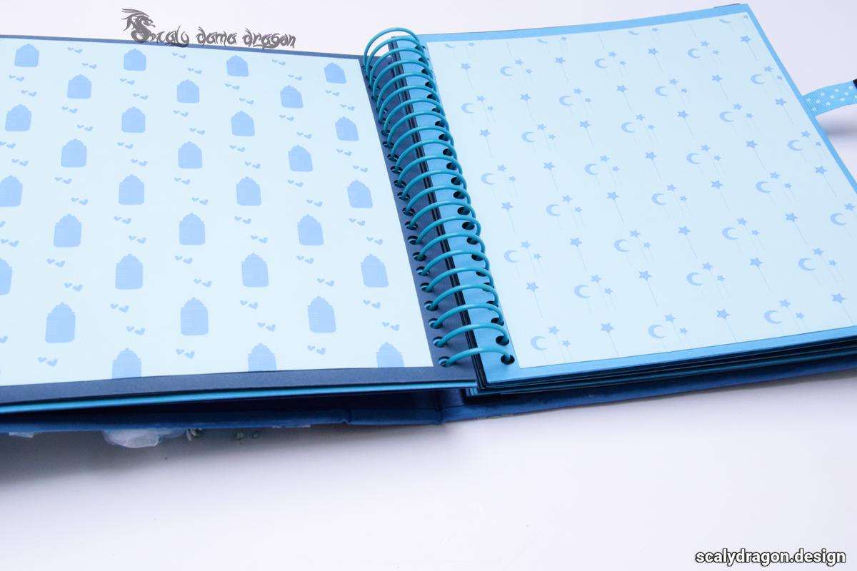 Corta las cartulinas para los sobres, luego pegalos y perfora y por ultimo decora con papeles estampando acorde a la decoración de la portada.