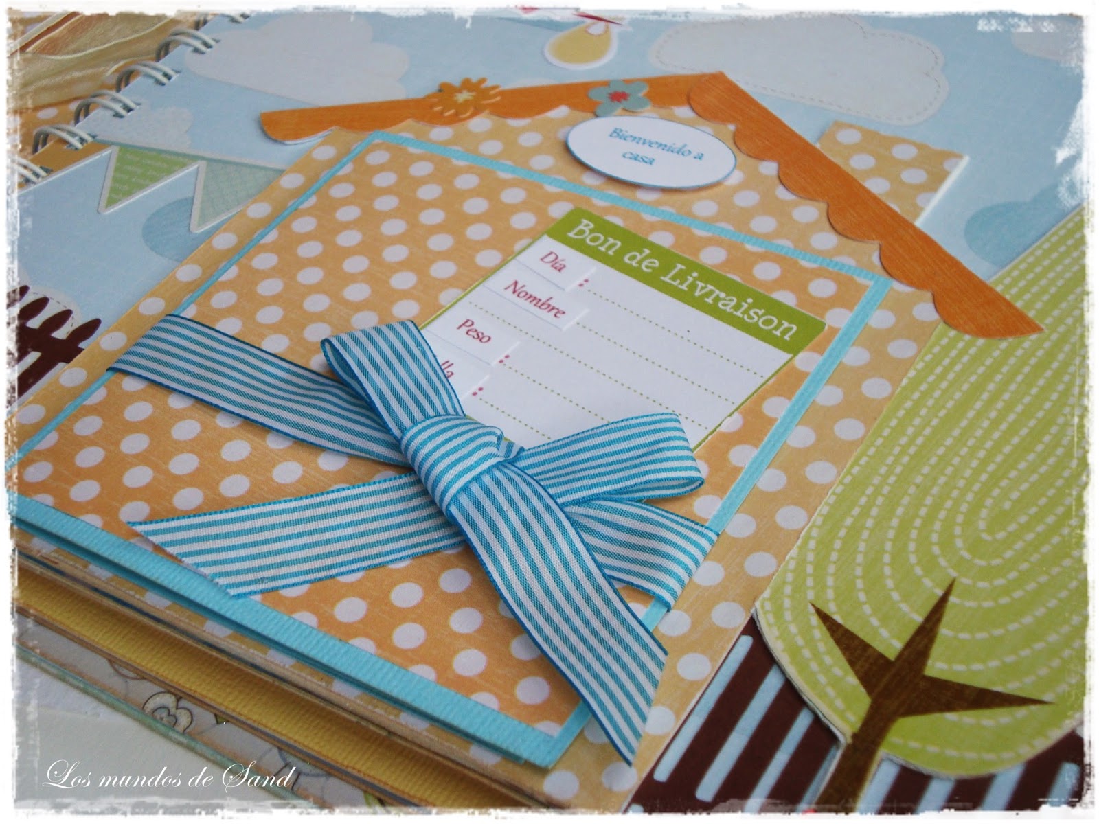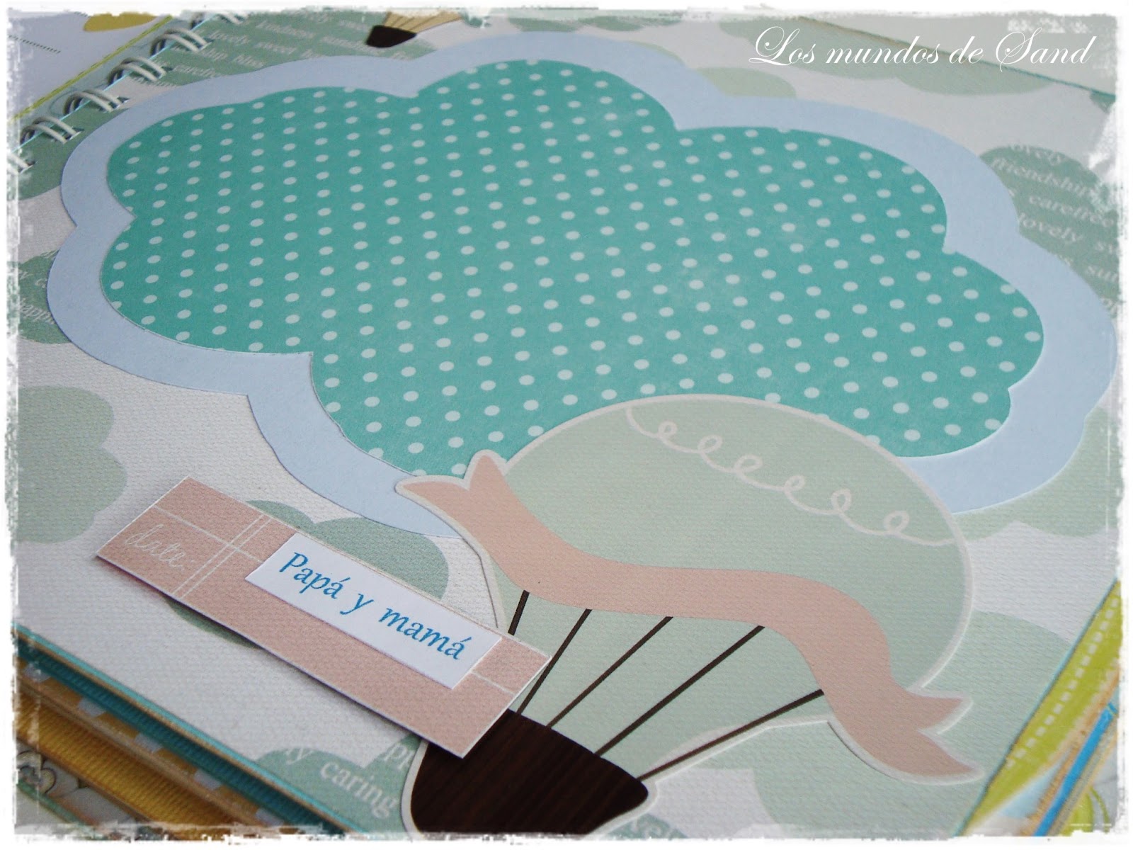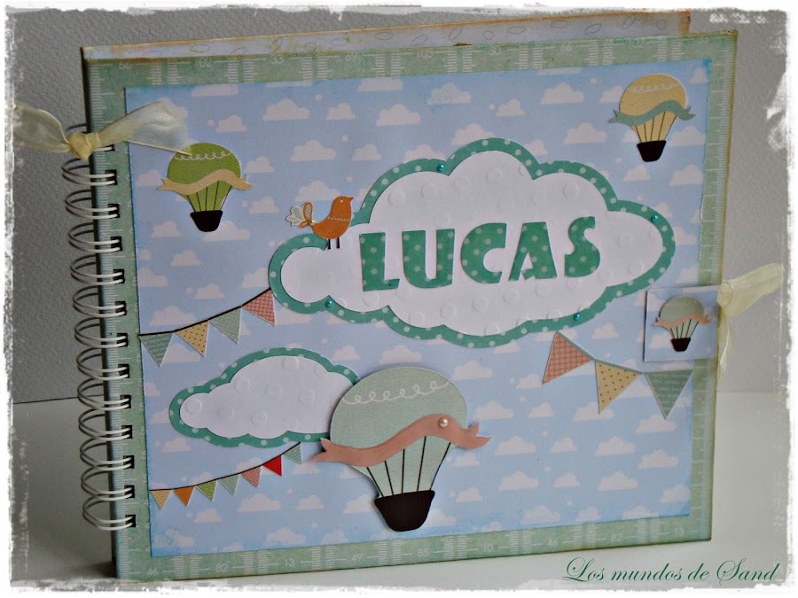 Siempre los realizo con cuidadoso detalle: los temas de las páginas, el escenario, la combinación de colores... Me gusta impregnarlos de ternura y hacerlos de belleza simple, para no restarle protagonismo a las fotografías. En este caso, Lucas es un bebé muy querido y muy esperado, por eso quise transmitir en sus páginas la dulzura y la alegría de su llegada. Es muy importante los datos que me dan sobre los padres, en esta ocasión son una pareja que le encanta viajar, por ello una portada llena de globitos y nubes.
