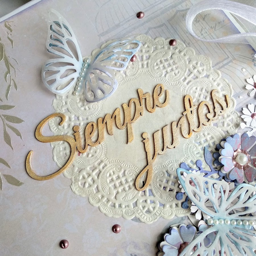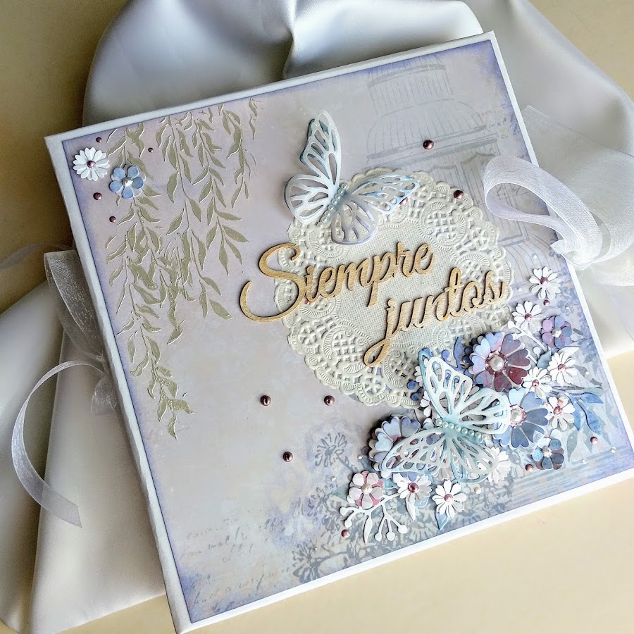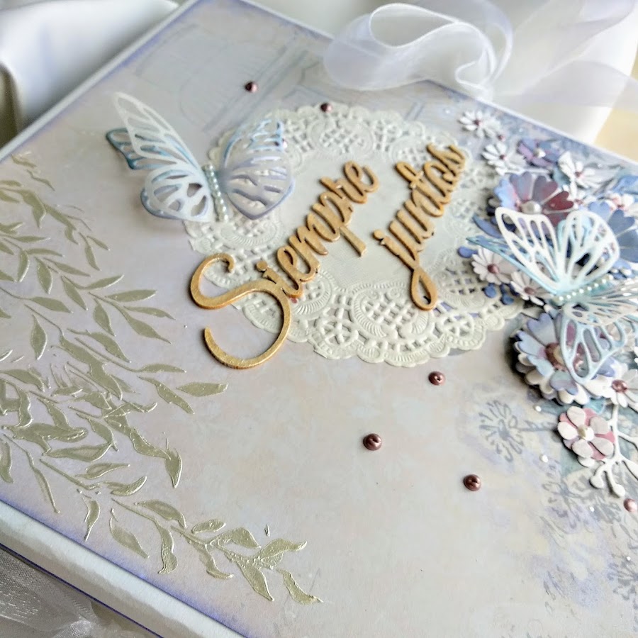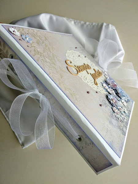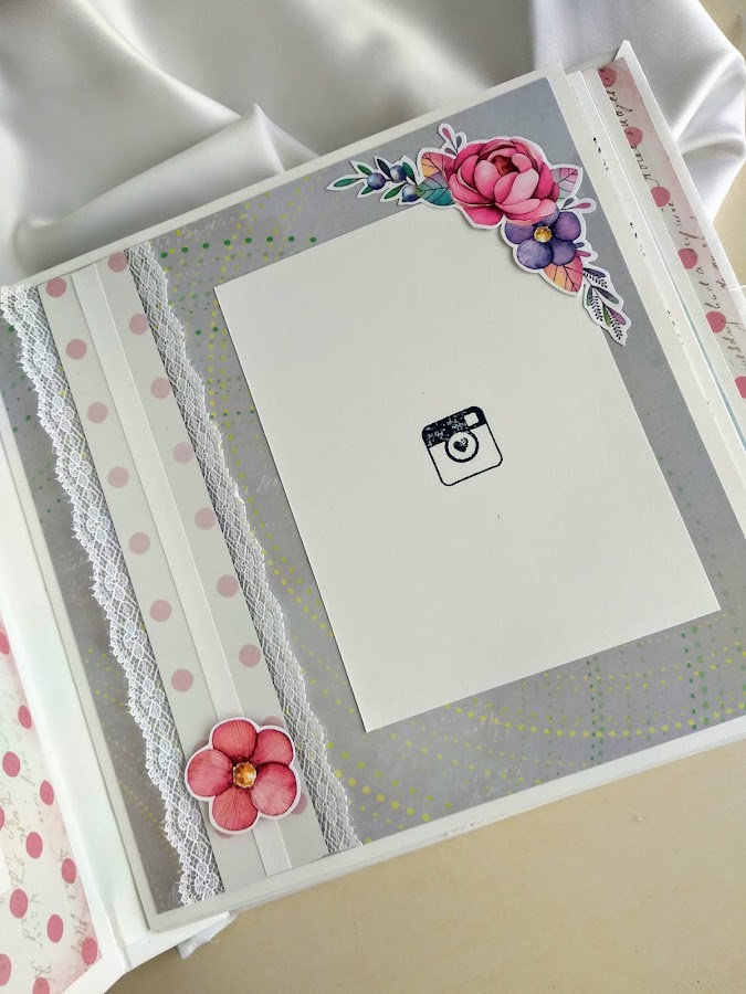 Estructura cuadrada, encuadernación de falsa espina y papeles y chipboard de Kora Project.Las páginas poco decoradas para que ellos terminen de hacerlo con las fotografías.
