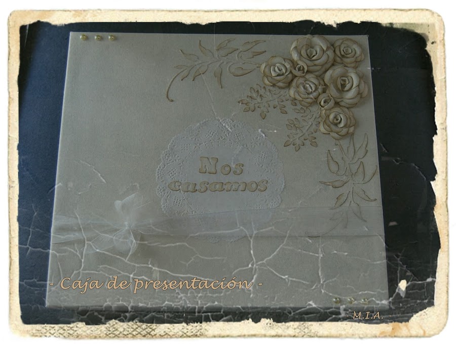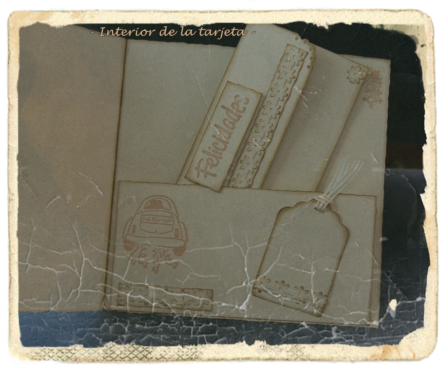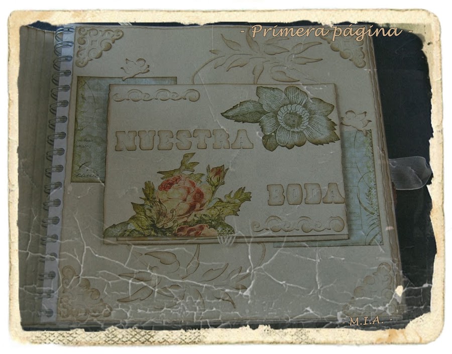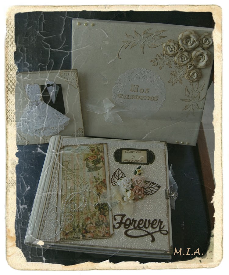 Y, a última hora, de prisa y corriendo, les hice una carpeta donde guardar las lecturas que los amigos de la pareja iban a hacer en la ceremonia, entre ellos, mi hijo... impresas en papel de pergamino y envejecidas con la tinta distress.
