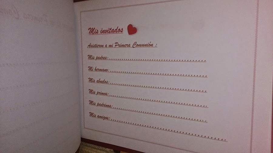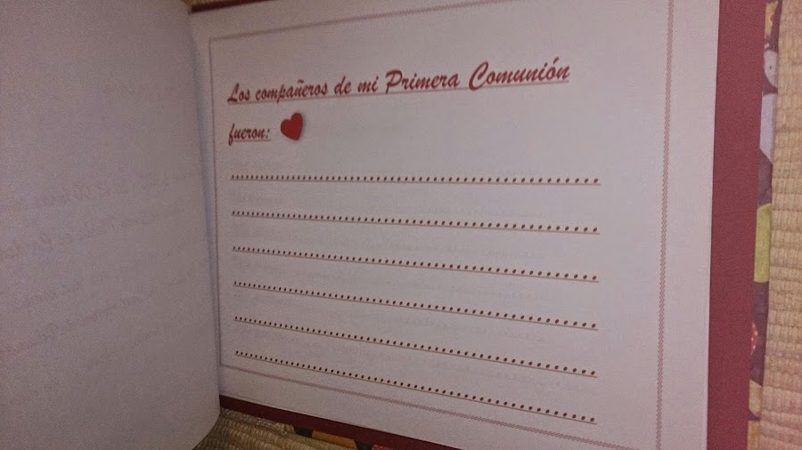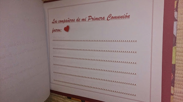 En el interior hay páginas donde escribir los datos de ese día tan especial, como los compañeros de la catequesis, los invitados a la ceremonia, sus firmas y dedicatorias de recuerdo, y como no, muchas páginas en blanco para poder incluir fotografías del día.